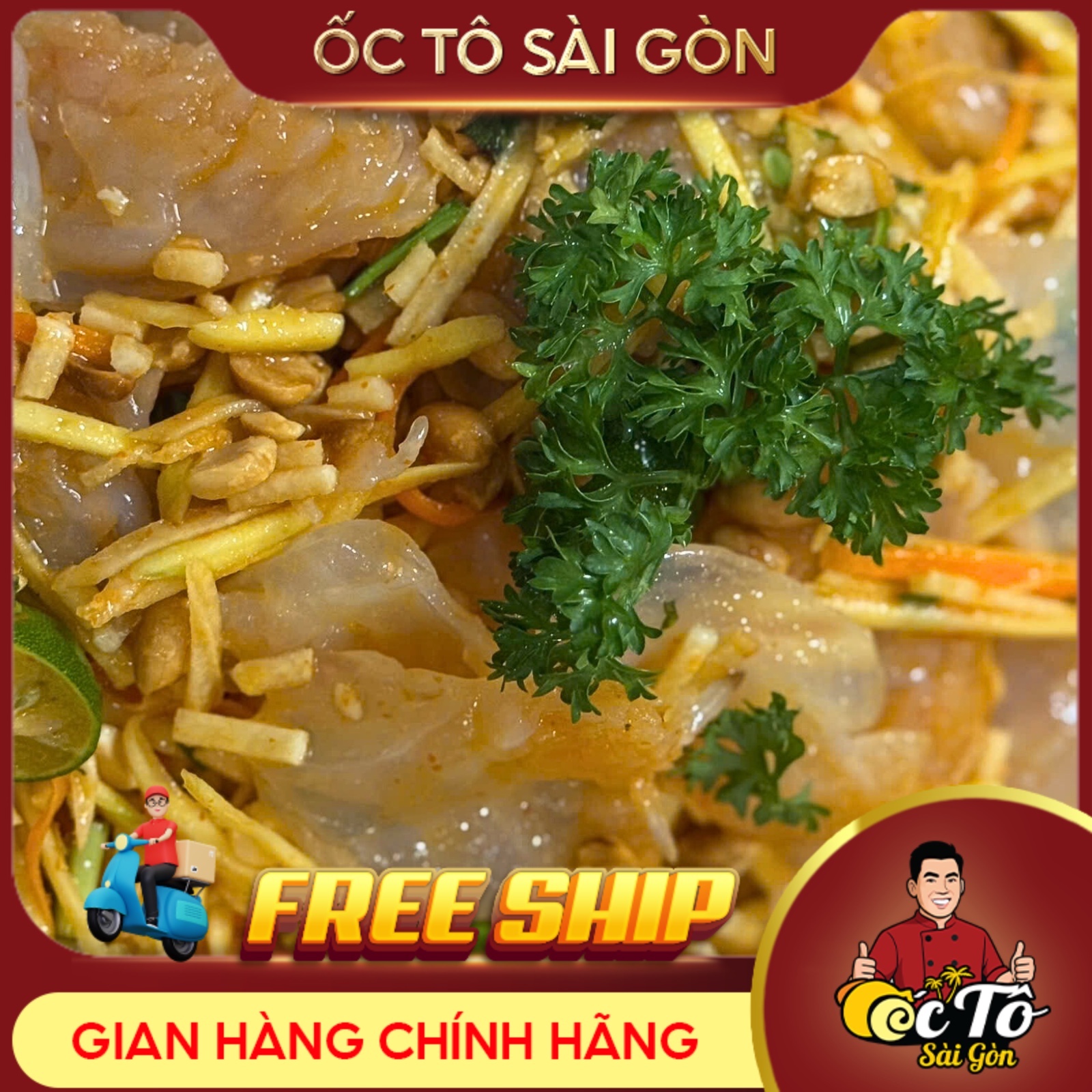 Gỏi sứa Sài Gòn giòn sần sật, hòa quyện vị chua cay mặn ngọt hấp dẫn. Món khai vị thanh mát, bổ dưỡng, cực hút khách tại Ốc Tô Sài Gòn.