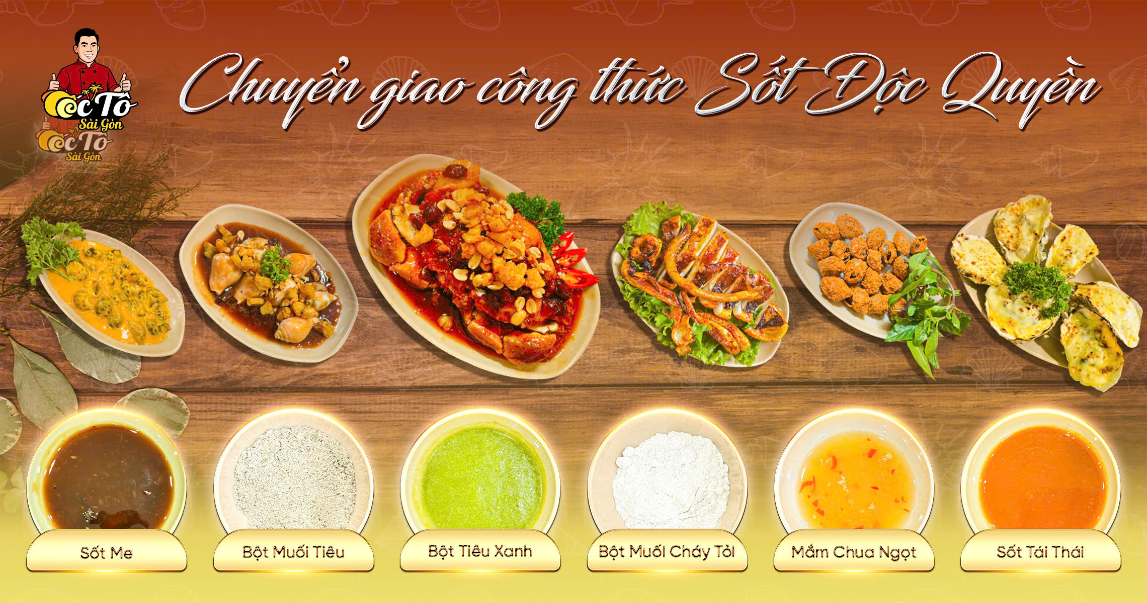 • Trọn bộ công thức sốt chấm – sốt nướng – sốt xào – sốt đặc sản của Ốc Tô Sài Gòn.