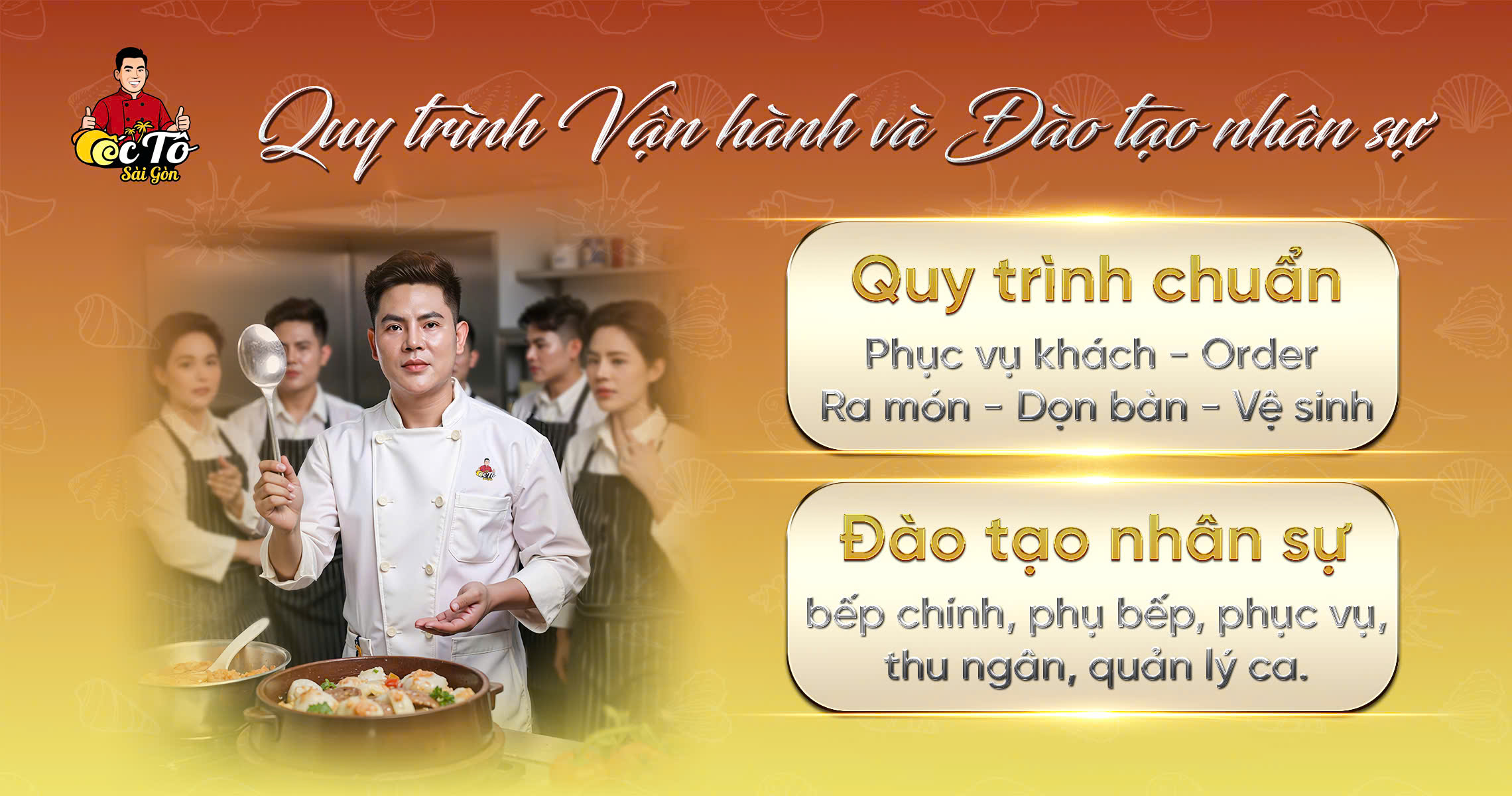 • Đào tạo nhân sự: bếp chính, phụ bếp, phục vụ, thu ngân, quản lý ca.