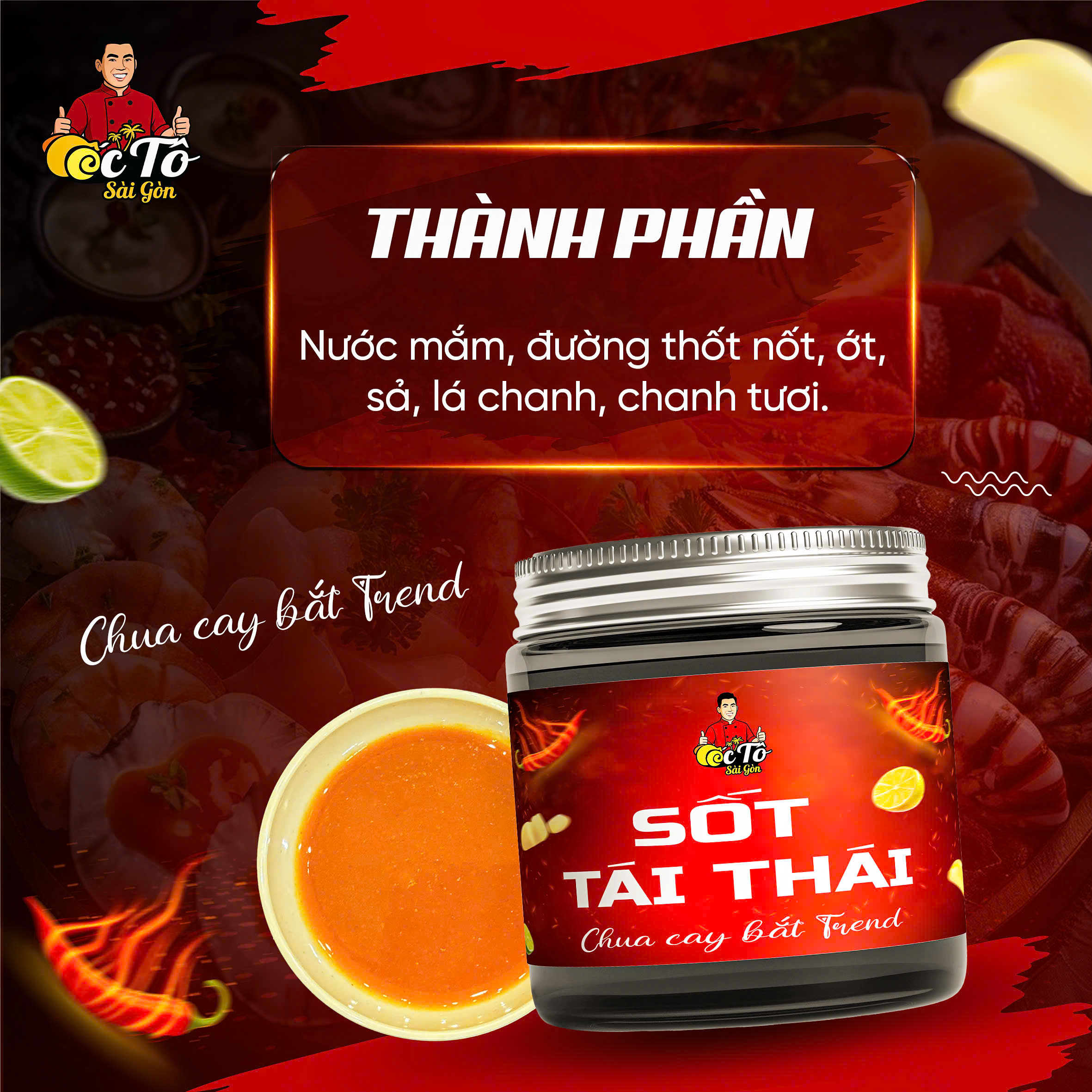 • Thành phần: Nước mắm, đường thốt nốt, ớt, sả, lá chanh, chanh tươi.